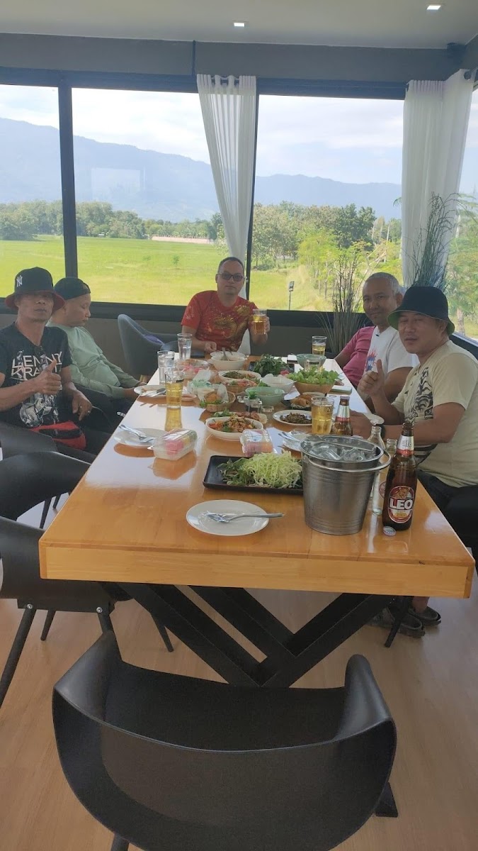 Wedding party and dinner reception on well cared for lawn. Round tables for eight guests with many well prepared dishes ; fried fish, cashew nut chicken , German roast pork , fried rice, tom yum , and more plus cupcakes & chilled lychee for dessert. All excellent and served expeditiously - thank you !!! Our backdrop is the Sky high Phu Taberk with lights glowing above. The music ( 4 hours was classical , Thai traditional even a little soft rock & country. So well done with great amplification. Great Man & woman team performers ! Everything is right here; safe and spacious back parking lot for the resort, side parking lot with attendant for large events. We had perhaps 150 people yet they can accommodate twice that many. Comfortable outdoors ( Nov 15 ) and they have an indoor area ( 2 level as well ). 5 Stars for convenience ( good location ) , efficient staff , kindness , grounds & surroundings great, True excellence in meal preparation. Big groups or small Linda cafe & resort takes them all ! Really look forward to a return ! We had available to us one of their charming resort /bungalow sleepers for our overnight stay yet were unable to stay. Thank you everyone from Greg & Gigi !!!